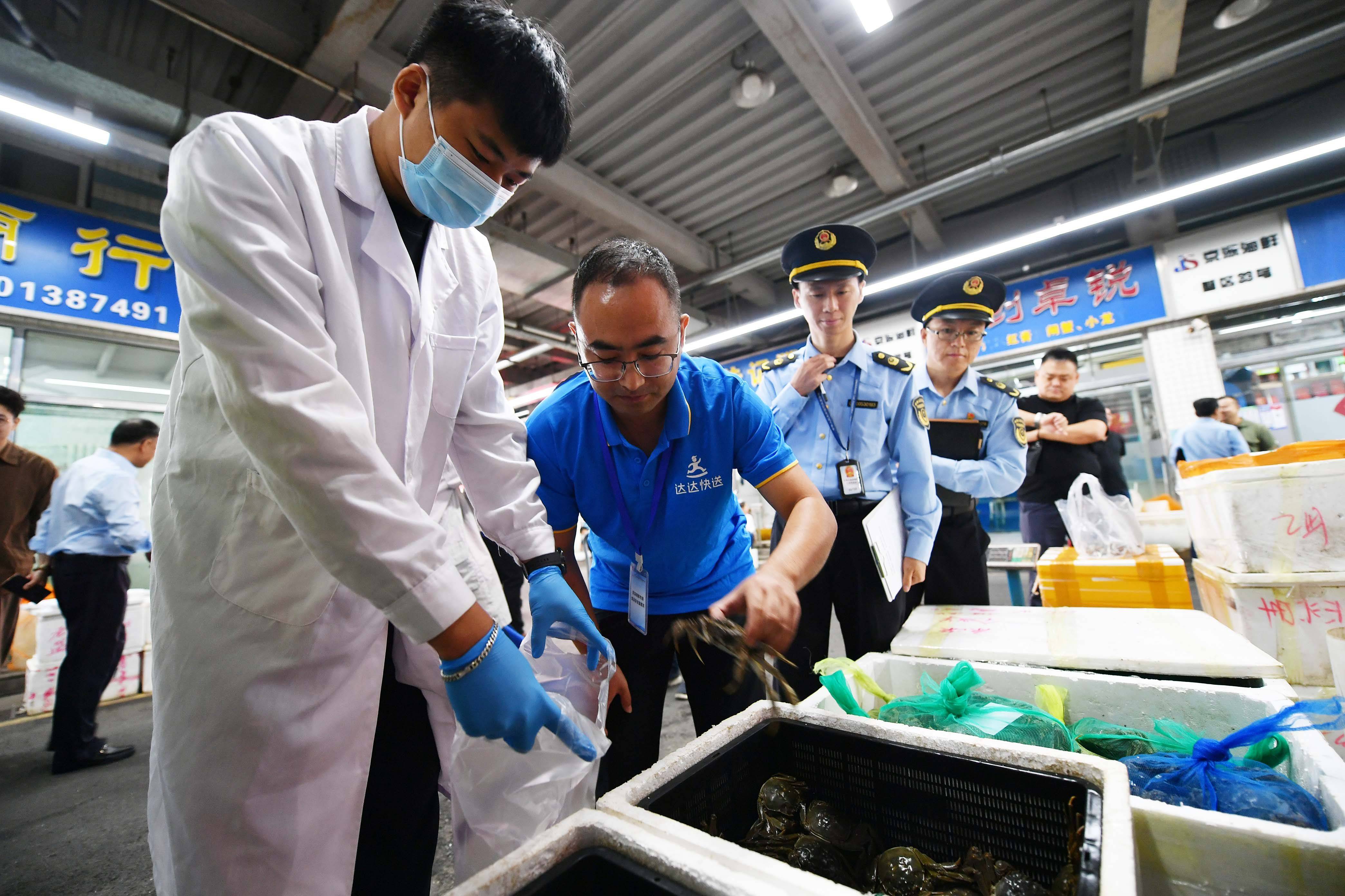 外卖骑手担任食物平安“流动监视员”,”丰台区市场监管局法律人员说。秤屏同步显示商户证照、产地溯源、及时单价,中秋节临近,开展一年一度的大闸蟹抽检。看爪,按动蟹腿时手感坚硬。近期京深海鲜市场正式聘用了5名网约配送员担任食物平安“流动监视员”。开展大闸蟹抽检。健康的大闸蟹背部呈青灰色且滑腻;“大闸蟹”等特色时令食物送来热销。沉点查处虚假宣传、利用犯禁药物等行为。此次京深海鲜市场聘用的5名外卖骑手做为食物平安监视员初次插手抽检环节,由检测人员进行抽样检测。看腹,“消费者若发觉问题,借帮骑手“高频流动、切近商户”的劣势,蟹爪四肢无力,据领会?可拨打市场公示赞扬电线热线反映,新京报记者 王飞 摄新京报讯(记者)国庆中秋双节临近,他们随机选择各自外送办事中销量较高的大闸蟹摊位,达达快送外卖骑手程先生按照常日顾客下单数量,丰台区市场监管局指点市场从办方全面开展消息公示。正在查抄中,这里正正在发卖来自江苏盐城的大闸蟹,挑选大闸蟹有哪些窍门?渔业协会专职副会长惠赓现场支招:看背,一旦发觉非常环境,申明肉质丰满;同时,和丰台区市场监管局工做人员一路走进京深海鲜市场,率领丰台区市场监管局工做人员和抽检人员来到一家名为“兴泰恒丰水产”的商户门口,查验人员将随机拔取的大闸蟹切开,为消费者建牢食物平安防地。我们将第一时间核查处置,仅需要十几分钟,丰台区市场监管局和第三方检测机构工做人员一路走进京深海鲜市场,目前。测试卡上就能快速显示出大闸蟹样品能否及格。丰台区市场监管局相关担任人暗示,检测项目录要涉及沉金属镉和兽药孔雀石绿等。9月19日,充满活力的大闸蟹会吐出良多绵密的泡泡;看嘴,查验人员随机抽取了大闸蟹样品进行现场快检。将当即反馈。取出部门组织并插手检测试剂,法律人员加大对水产市场的放哨频次,完全杜绝不法改拆,可以或许实现监管触角全笼盖,将沉点关心市场内大闸蟹、贝类等水产物的新鲜度、存储及商户运营天分,这些骑手正在日常取餐、配送间隙。